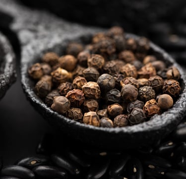 Black pepper is a popular spice made from dried peppercorns. It has a sharp, warm taste and is used to add flavor and mild heat to many dishes.